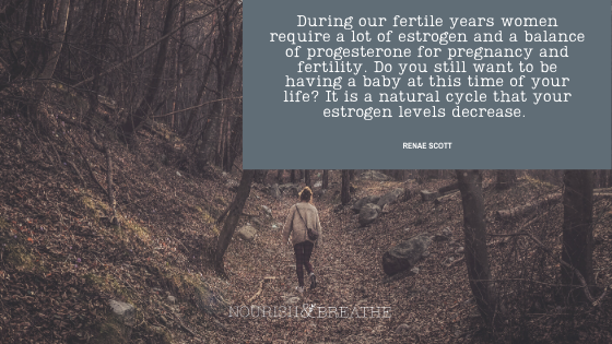 A lot of the talk around menopause is the loss of estrogen. During our fertile years women require a lot of estrogen and a balance of progesterone for pregnancy and fertility. Do you still want to be having a baby at this time of your life? It is a natural cycle that your estrogen levels decrease.